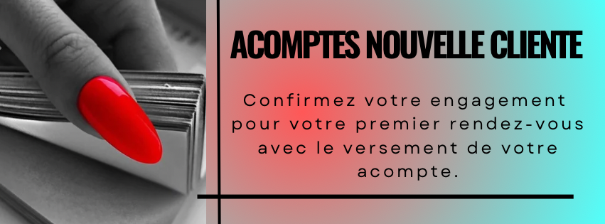 Pour vous, mes nouvelles clientes, et afin de confirmer votre engagement sur votre premier RDV, un acompte de 10 € vous est demandé.
